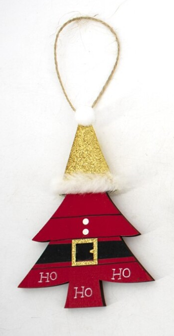 Árvore de natal em madeira com barrete (11cm)
